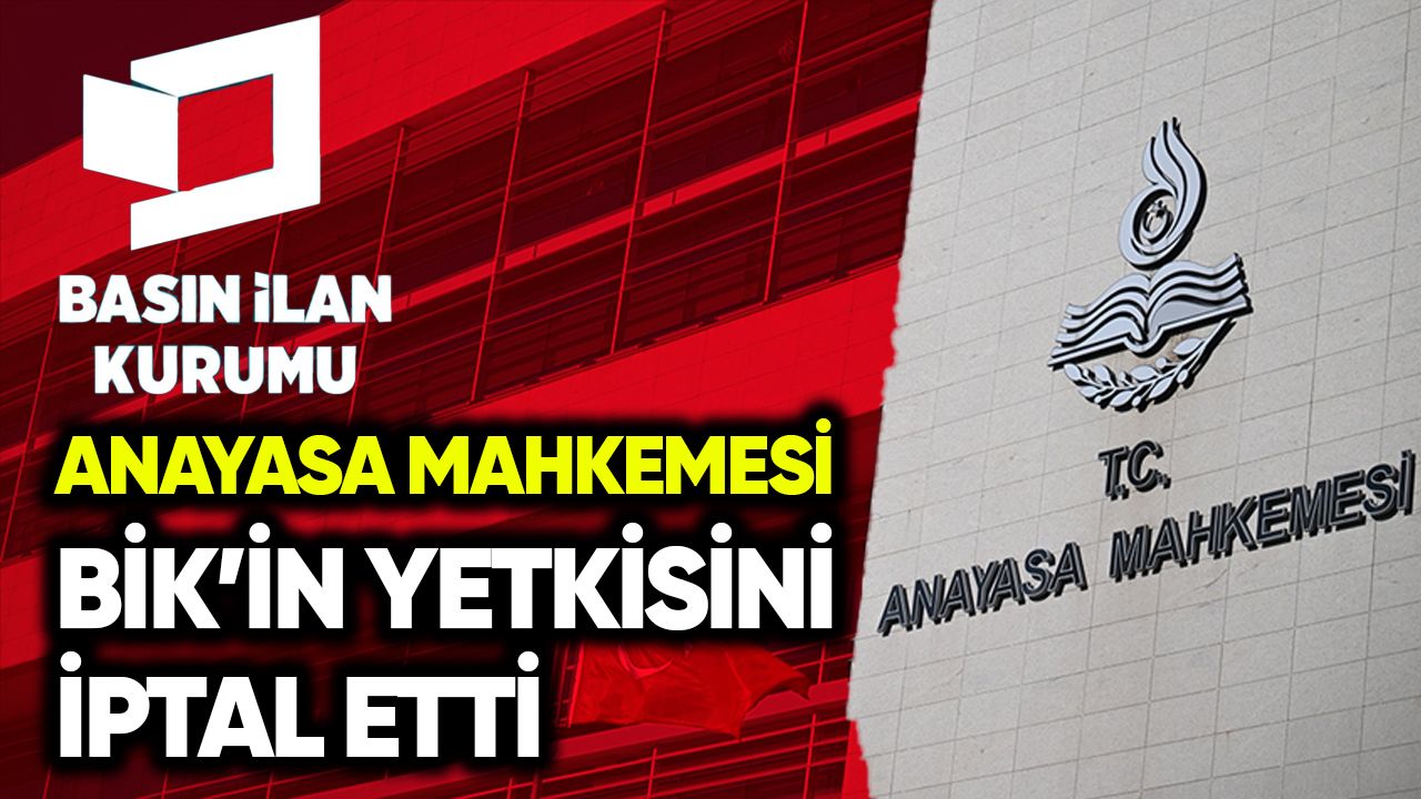 Anayasa Mahkemesi (AYM), Basın İlan Kurumu'nun (BİK) gazete, dergi ve internet haber sitelerine resmî ilan ve reklam kesme cezası verme yetkisini düzenleyen Kanun hükmünü iptal etti. Yüksek Mahkeme, Kanun'un 49. maddesinde öngörülen yaptırımın Anayasa'ya aykırı olduğuna karar verdi.